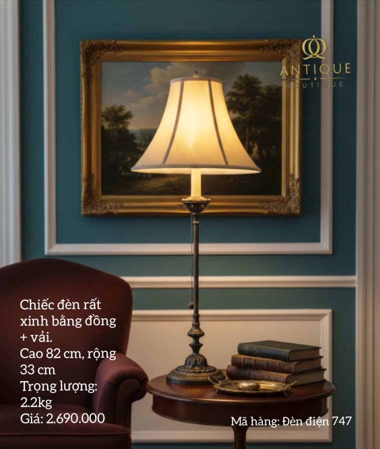 Chiếc đèn đọc sách của Châu Âu, bằng đồng và chụp vải