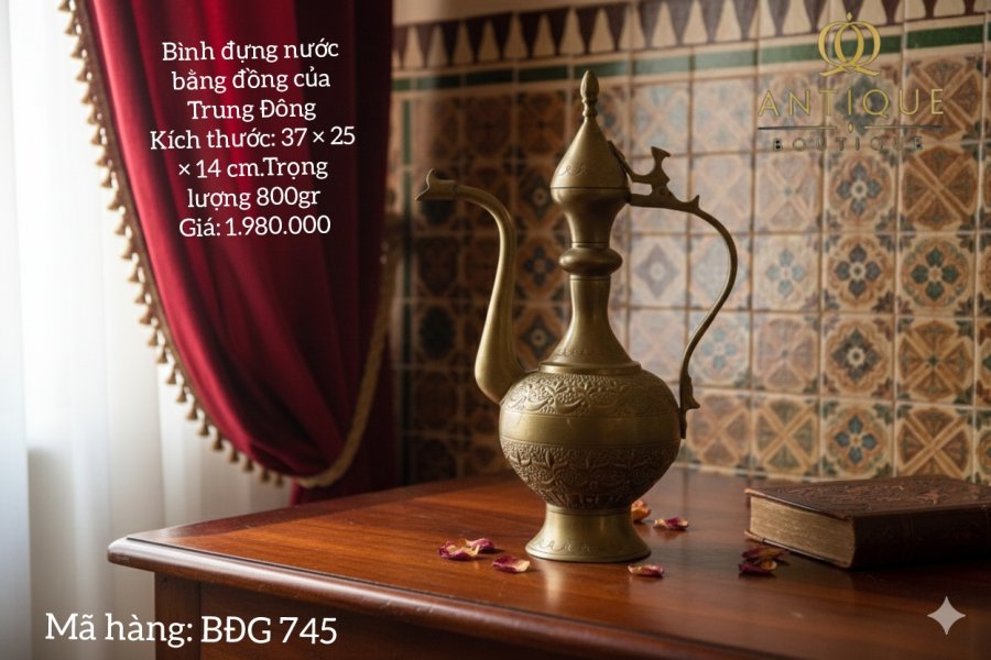 Bình hoa bằng đồng đập thủ công. Bình hình lục lăng có nơ