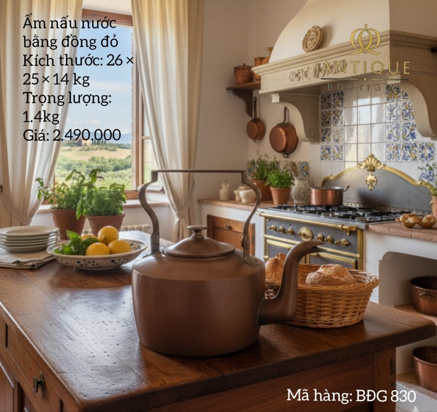 Ấm nấu nước bằng đồng đỏ , gợi nhớ cuộc sống yên bình sang trọng của vùng thôn quê nước Ý