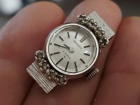 Seiko nữ hàng xưa rất xưa Máy cót tay Size 22 Vỏ lắc kê vàng trắng Niềng đính đá Dây