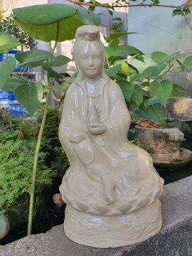 Tôn tượng Quan Âm gốm Sông Bé Bình Dương cũ.Cao 28cm. 700k