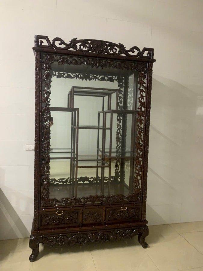 Tủ bày đồ trúc nho gỗ gụ kt 217-107-35