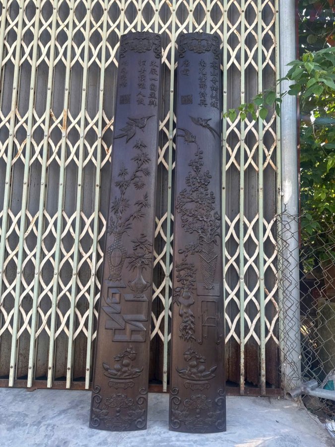 Đôi câu đối gỗ gụ Kt:197x22x3