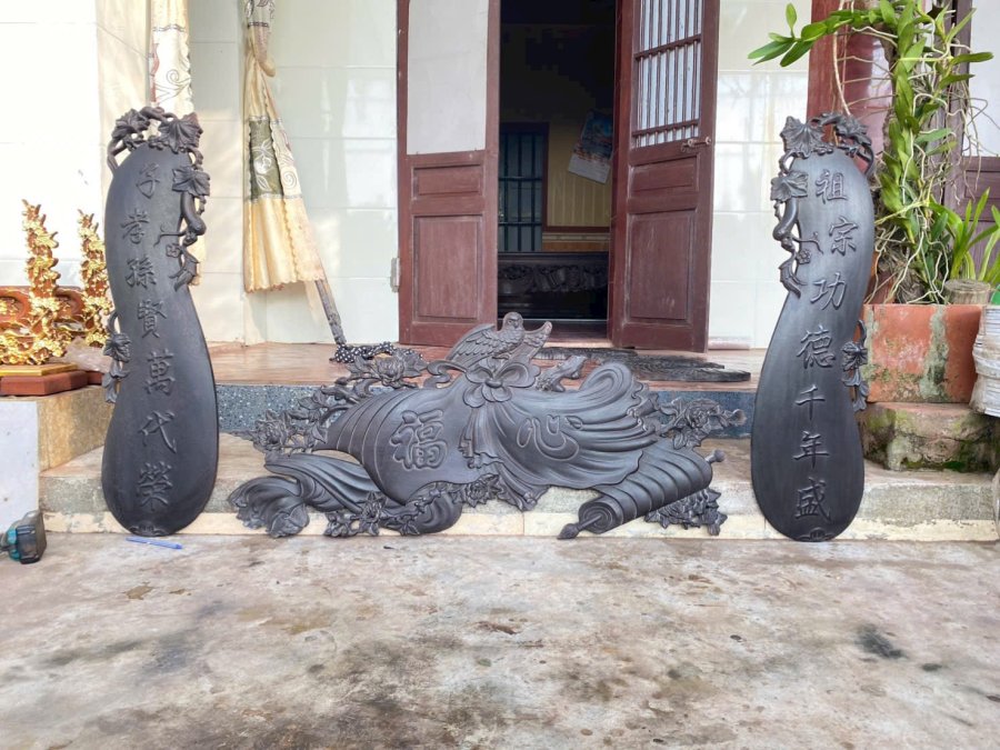 Bộ khánh thư Tâm Phúc Kt : 107 x 45 x 3 Câu đối : 90 x 24 x 3 Gỗ lim
