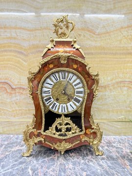 •-Đồng Hồ Để Bàn Boulle - Vỏ gỗ vẽ tay ốp đồng