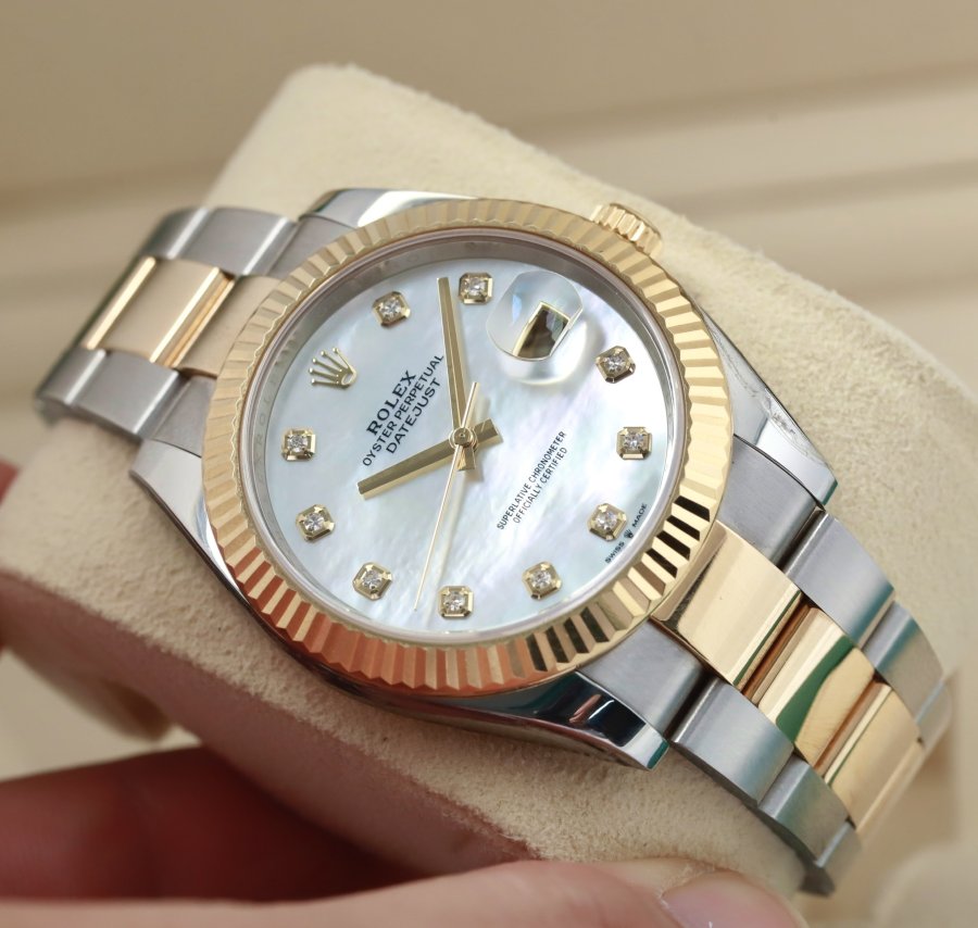 Rolex Datejust 126333 MOP (Khảm trai) Trắng Diamonds, Demi Vàng đúc 18k, Mark 2, Size 41mm