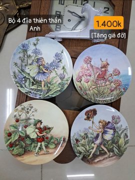 Bộ 4 đĩa cảnh thiên thần Anh [Tặng giá đỡ] có lổ treo