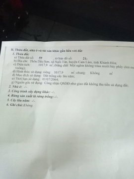 BÁN LÔ ĐẤT ĐẸP GIÁ TỐT TẠI Thôn Dầu Sơn. xã Suối Tân, huyện Cam Lâm