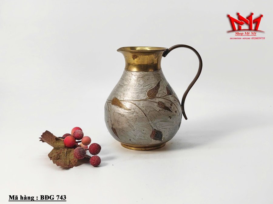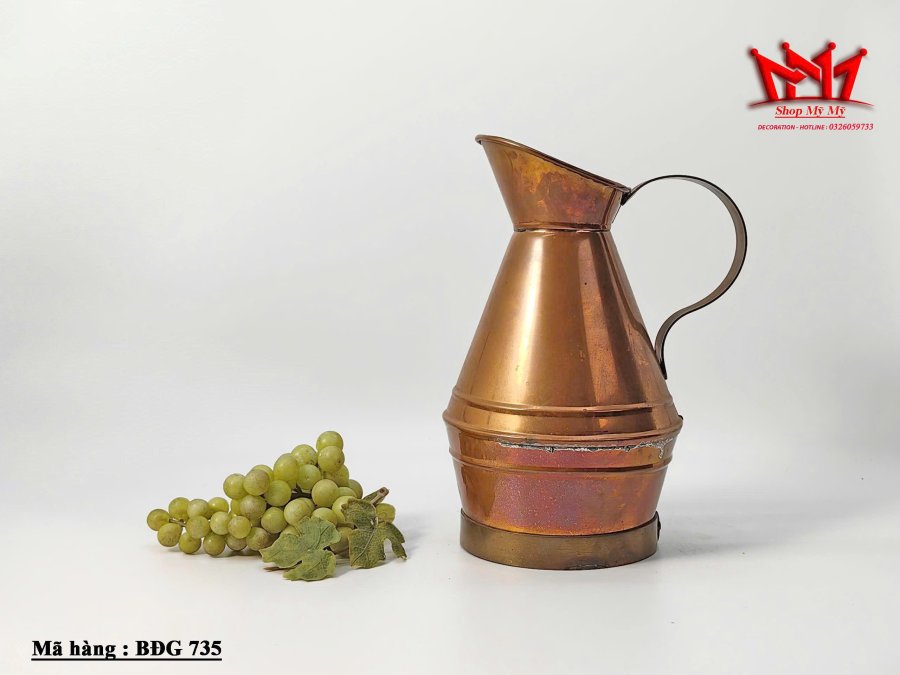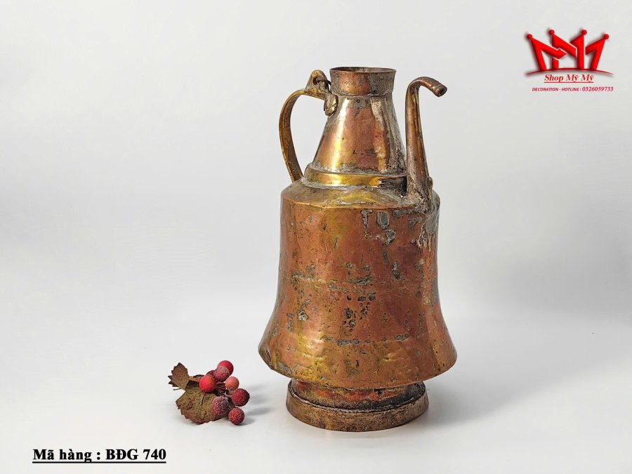 Bình đựng nước bằng đồng đỏ có quai cầm cổ điển