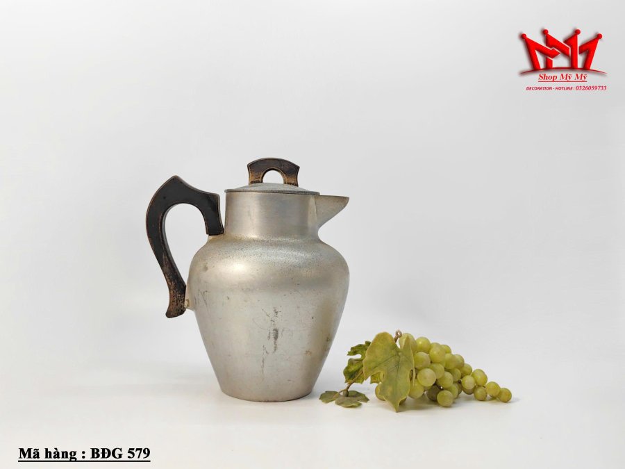 Ấm pha cà phê bằng kim loại tay cầm gỗ cổ điển