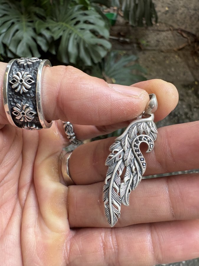 Dây chuyền đôi Truelements bằng bạc 925 hình lông vũ, mặt dây chuyền hình lông vũ và trái