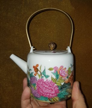 Ấm sứ Thanh Hoa quai xách đồng vàng GL790k