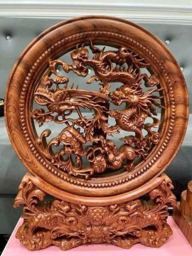 Tranh cửu long tranh châu dát vàng Kt : 50 x 50 x 3 Gỗ lim
