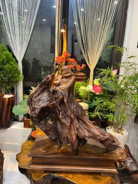 Di lặc gỗ lũa bách xanh Cao46 ngang50 sâu 20 tặng kỷ