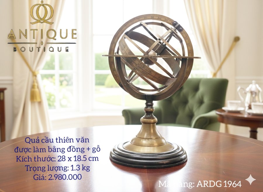 Quả cầu thiên văn được làm bằng đồng + gỗ