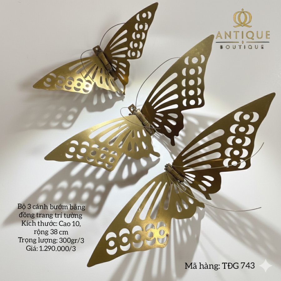 Bộ 3 cánh bướm bằng đồng trang trí gắn tường