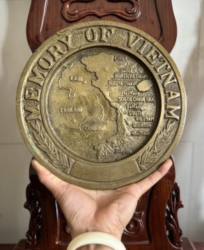 Liễn đồng xưa bản đồ quốc gia Việt Nam bao chuẩn hàng trước 1945, nguyên zin lành đẹp.