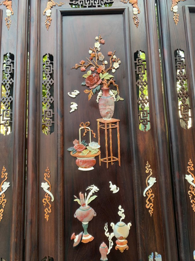 Phương lười ngũ phúc gỗ gụ Kt210x87x90