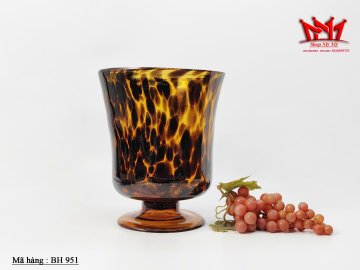 Bình thuỷ tinh dạng đế ly hoạ tiết mai rùa được thổi thủ công