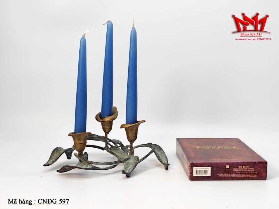 Chân nến bằng đồng cổ điển thiết kết hình hoa và lá