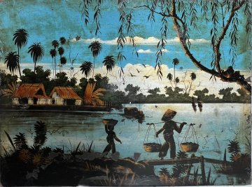 Tranh sơn mài thập niên 40 Cảnh Quê Hương Thanh Bình Kt 30cm x 40cm