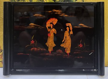 Khây Sơn mài vẽ vàng xưa Kt 30cm x 40cm
