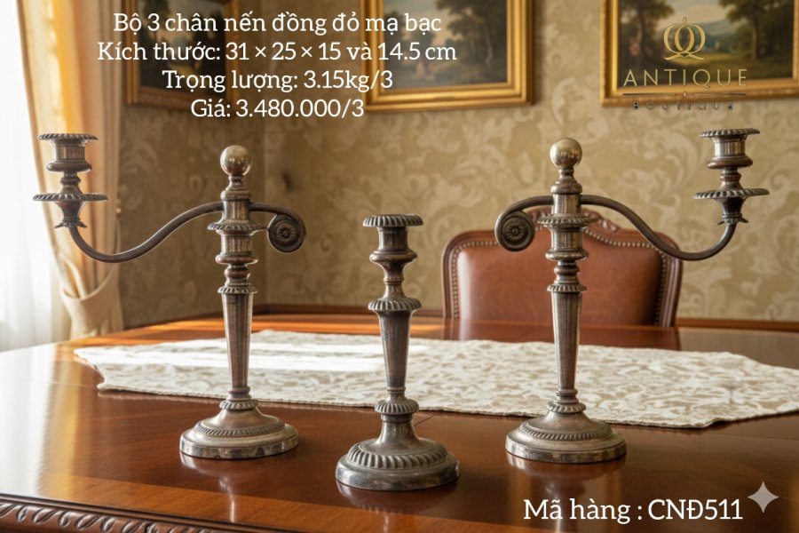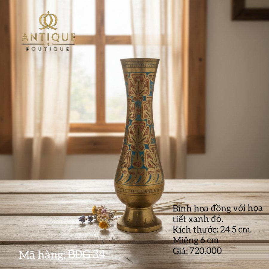 Bình hoa bằng đồng, họa tiết xanh lam và đỏ