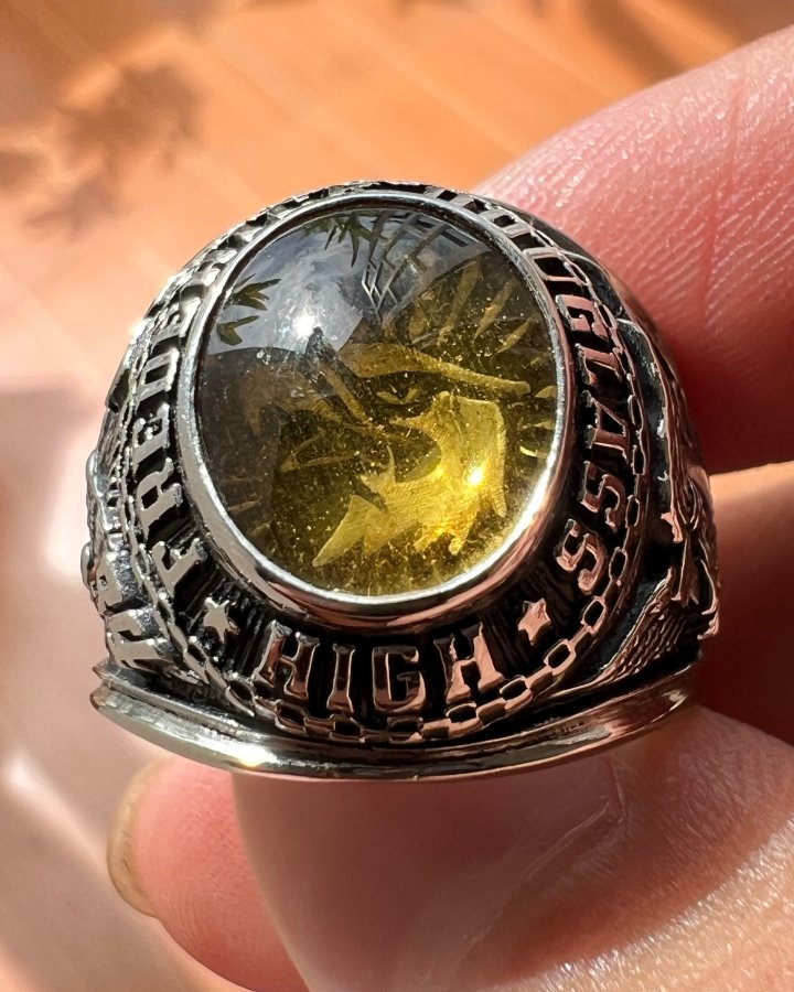 Nhẫn hợp kim Virginia năm 1983 Phôm bự hoa văn sắc nét đá vàng mo ốp logo đại bàng rất đẹp