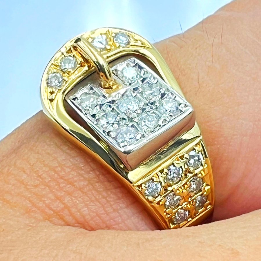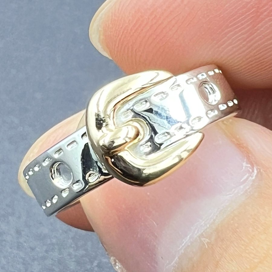 Nhẫn vàng 18k ốp bạch kim pt900 Nhật model Hermes mới tinh hoa văn sắc nét đính 26v soàn t