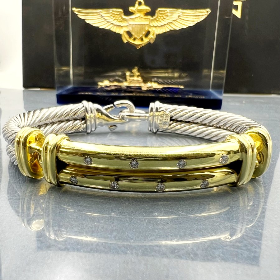Lắc bạc 925 và vàng 14k hiệu david yurman mới tinh phôm bự hoa văn sắc nét đính 8v soàn th