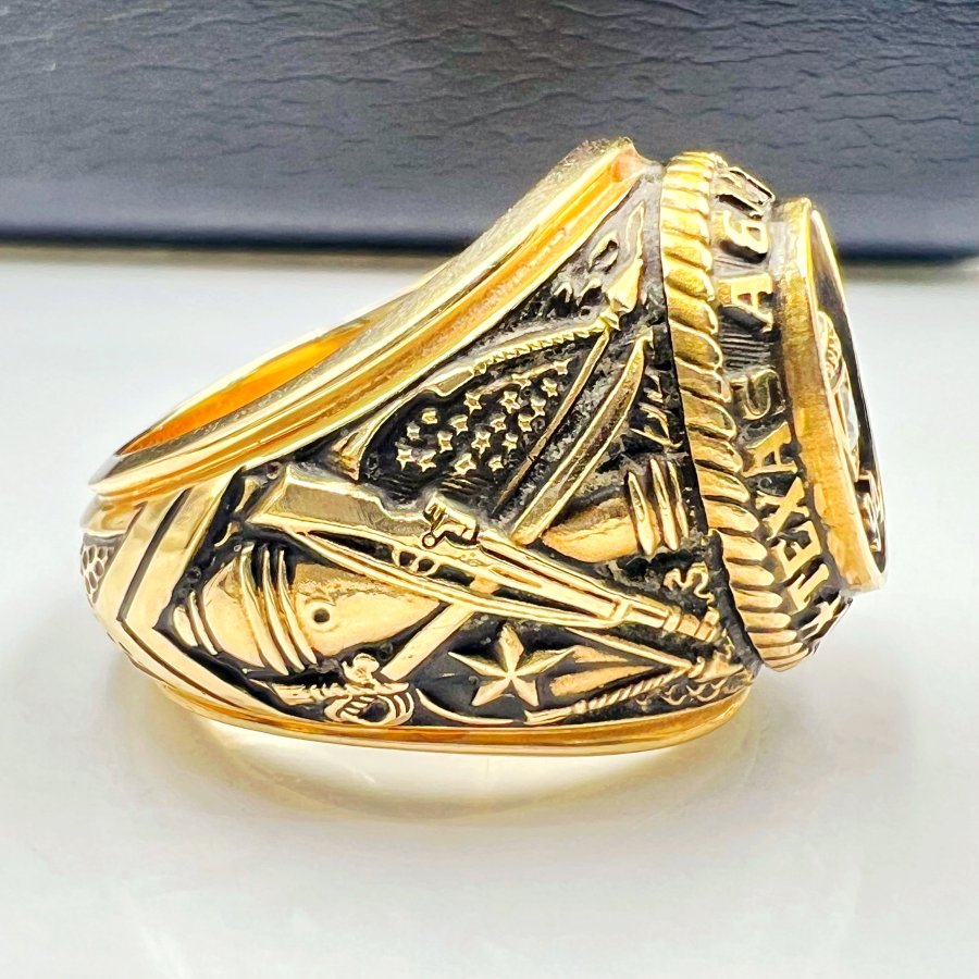 Nhẫn vàng 10k trường ********** Texas A&M năm 1994 mới cứng phôm bự hoa văn sắc nét logo đại