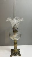 Đèn dầu Pháp cổ bầu pha Lê chân đồng đúc đặt tuyệt đẹp
