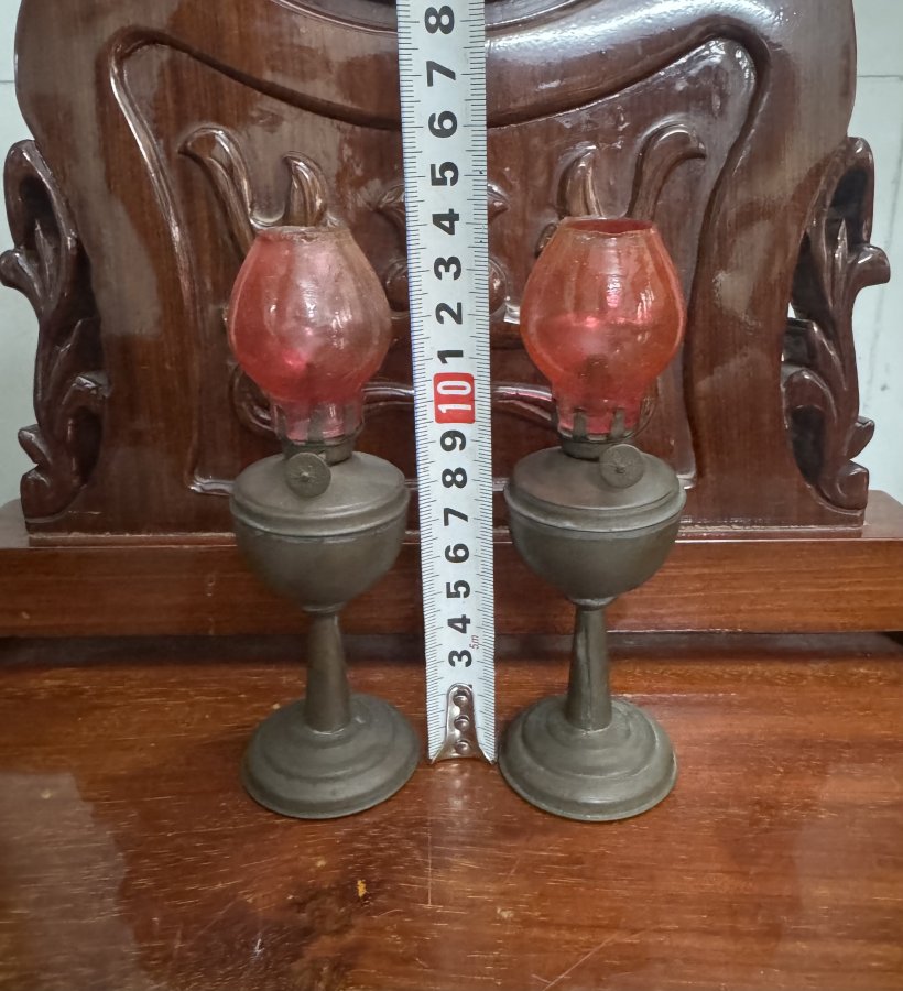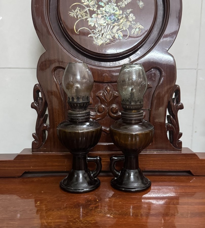 Cặp đèn dầu Việt Nam xưa, siêu mini nguyên zin luôn bóng kính mời.