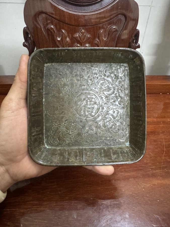 Khay triều Nguyễn chạm dơi phúc chuẩn cổ kính mời.