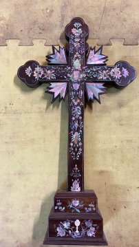 Combo bộ sập gụ tủ chè khảm ốc đỏ Singapore