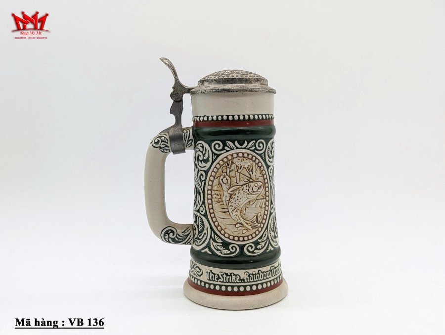 Vại bia Avon cổ điển có nắp đậy, in hình cá hồi cầu vồng