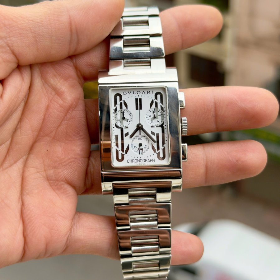 BVLgari Rettangolo dáng tank chất ngất Máy quartz thuỵ sỹ Kính saphire nguyên khối Vỏ thép