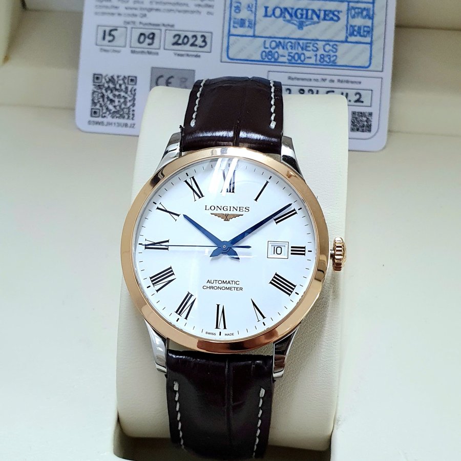 LONGINES CHRONOMETER L2.821.5.11.2 Bộ kim xanh nổi bật trên nền dial trắng phấn size 40mm