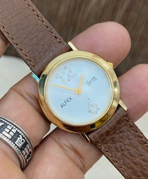 Alfex - Đồng hồ Nữ hàng hiệu thụy sỹ, vỏ như vàng đúc, cọc số đính đá đẹp & sang