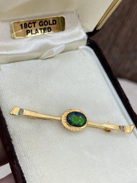 Cài áo Nhật nguyên hộp, mạ vàng đính Opal Úc mới đẹp cực sang