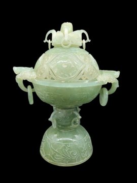 Đỉnh ngọc xông trầm :"Thanh Long Ngọc Đỉnh được nghệ nhân chạm khắc tỉ mỉ từ khối ngọc