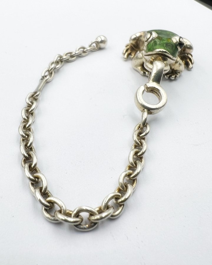 Bộ dây móc khóa và mặt con ếch bạc 925 hoa văn sắc nét khảm men rất đẹp, dây dài 15cm, mặt