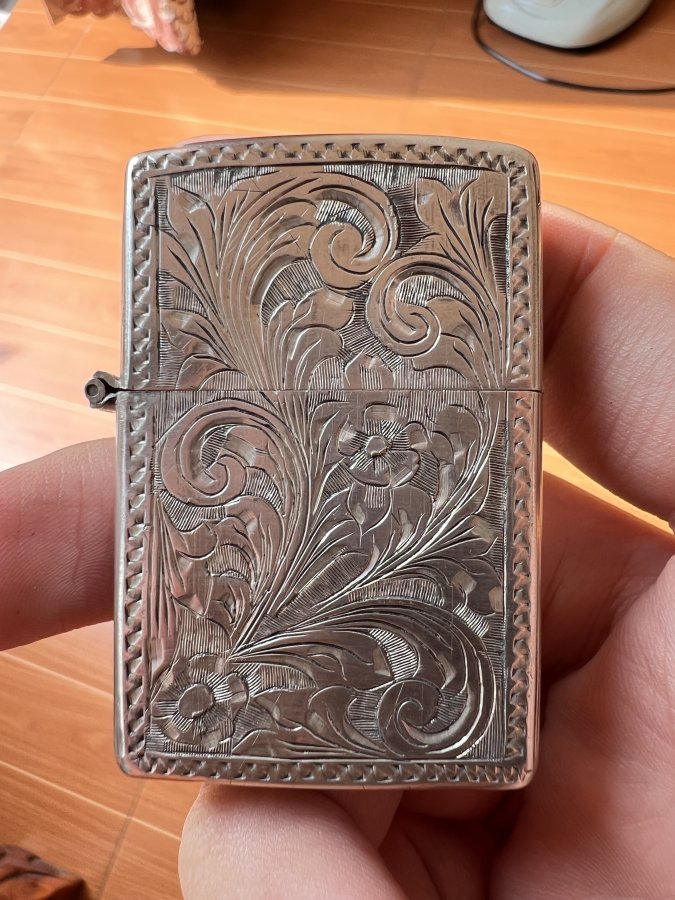 Bật lửa vỏ bạc khối 800 italy mới tinh hoa văn sủi tay sắc nét rất đẹp, ruột zippo la mã,
