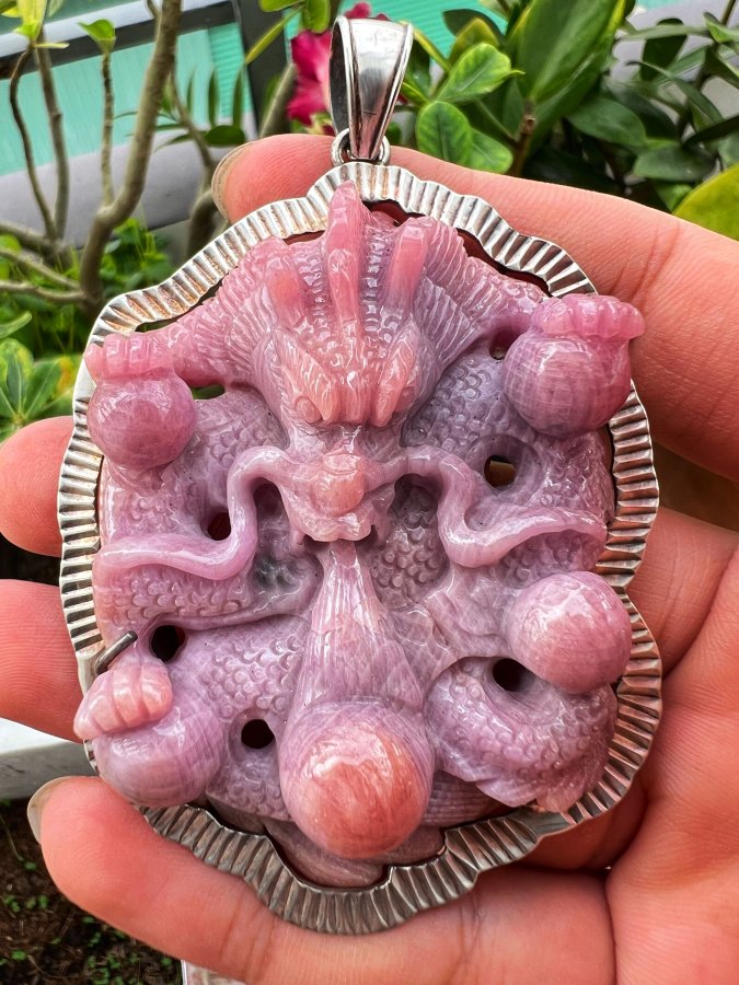 Mặt rồng ruby hà nội khung bạc 925 phôm bự hoa văn sắc nét rất đẹp, size 61x85mm, nặng 114