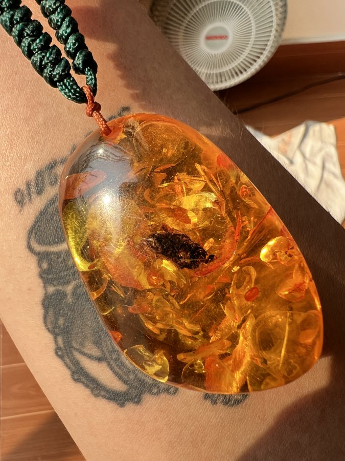 Bộ dây dù phối 6v hổ phách huyết và mặt hổ phách nở hoa có côn trùng phôm bự hiếm gặp rất