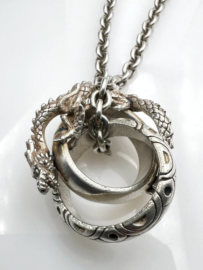Bộ dây và mặt rồng bạc 925 hiệu Mars mới tinh phôm bự hoa văn sắc nét rất đẹp, dây dài 48c