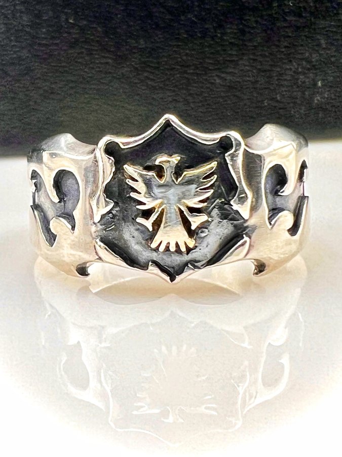 Nhẫn phoenix bạc 925 hiệu William Walles hoa văn sắc nét rất đẹp, size 19.5mm - bản ngang