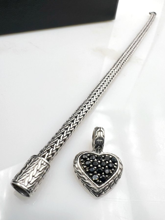 Bộ lắc và mặt trái tim bạc 925 hiệu John Hardy mới tinh kiểu dây vảy rắn hoa văn sắc nét đ