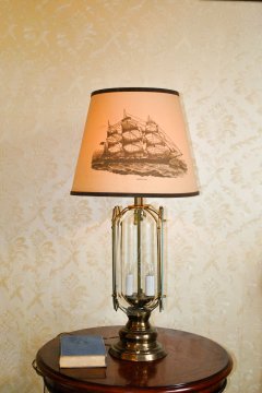 Cặp đèn thủy tinh chóa vải với họa tiết được vẽ thủ công bằng tay