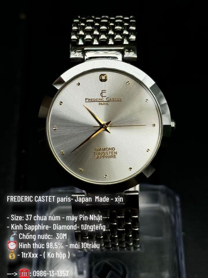 FREDERIC CASTET paris- Japan Made - xịn - Size: 37 chưa núm - máy Pin Nhật - Kính Sapph